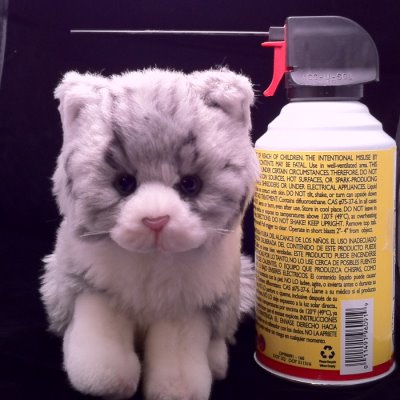 Kitten Buddy feels the air from the can of air but cannot see it.