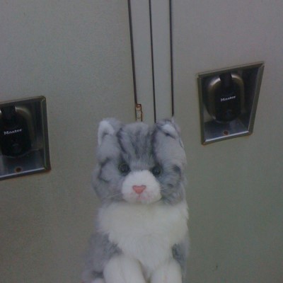 Kitten Buddy visits the locker were the items are safely stored.