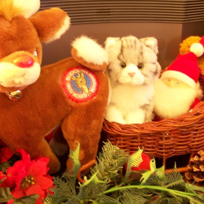 Kitten Buddy is ready to go for a ride in Santa's Sleigh.