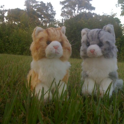 Travel Buddy meets up with Kitten Buddy in the grassy field.