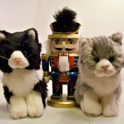 Tuxedo Buddy and Kitten Buddy like their toy nutcracker.